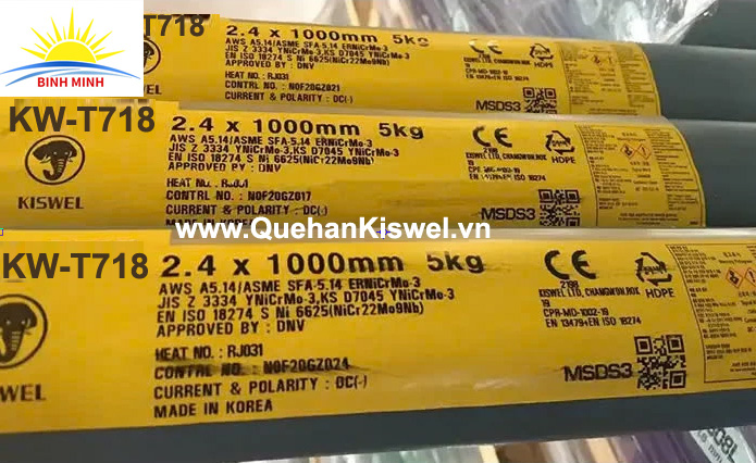Que hàn Tig hợp kim Kiswel KW-T718(ERNiFeCr-2) (Inconel 718, 706 và X-750 được sử dụng để hàn các chi tiết cần độ bền và khả năng chống ăn mòn ở nhiệt độ cao. Kim loại hàn vẫn giữ được các tính chất cơ học sau khi lão hóa.