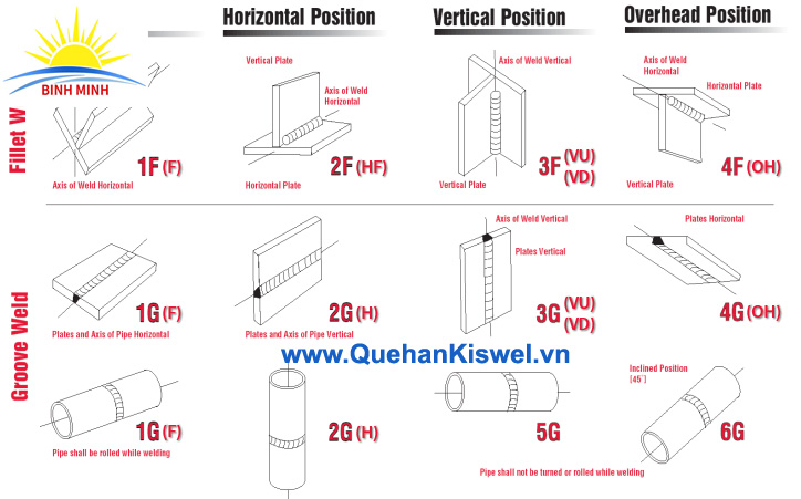 Vị trí hàn : F, HF, H, VU, VD, OH